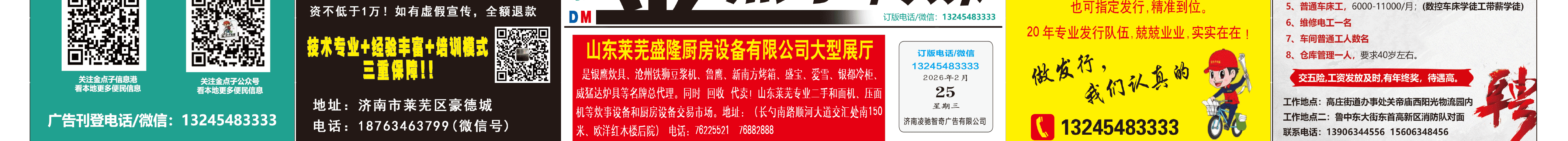 《萊蕪金點(diǎn)子廣告》報(bào)紙2月25日一、二版 http://m.bic34m.cn 發(fā)布日期:2026/2/25 9:10:38 文章作者:萊蕪金點(diǎn)子信息港