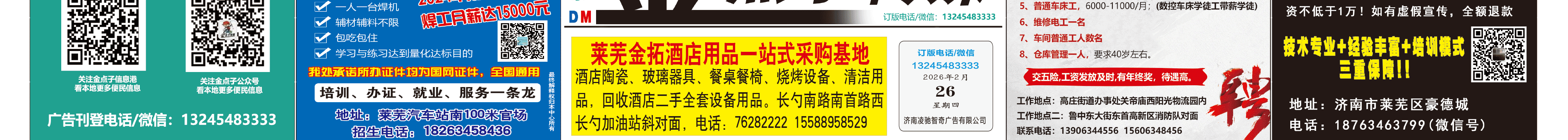 《萊蕪金點子廣告》報紙2月26日一、二版 http://m.bic34m.cn 發(fā)布日期:2026/2/26 9:19:36 文章作者:萊蕪金點子信息港