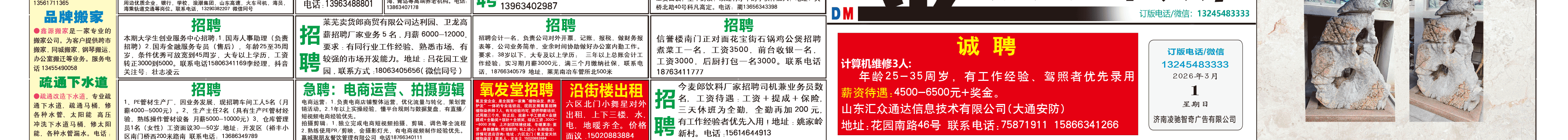 《萊蕪金點(diǎn)子廣告》報(bào)紙3月1日三、四版 http://m.bic34m.cn 發(fā)布日期:2026/3/1 8:24:41 文章作者:萊蕪金點(diǎn)子信息港