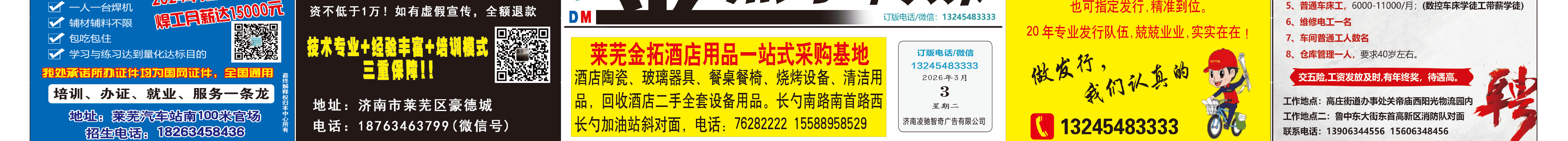 《萊蕪金點子廣告》報紙3月3日一、二版 http://m.bic34m.cn 發(fā)布日期:2026/3/3 9:32:21 文章作者:萊蕪金點子信息港